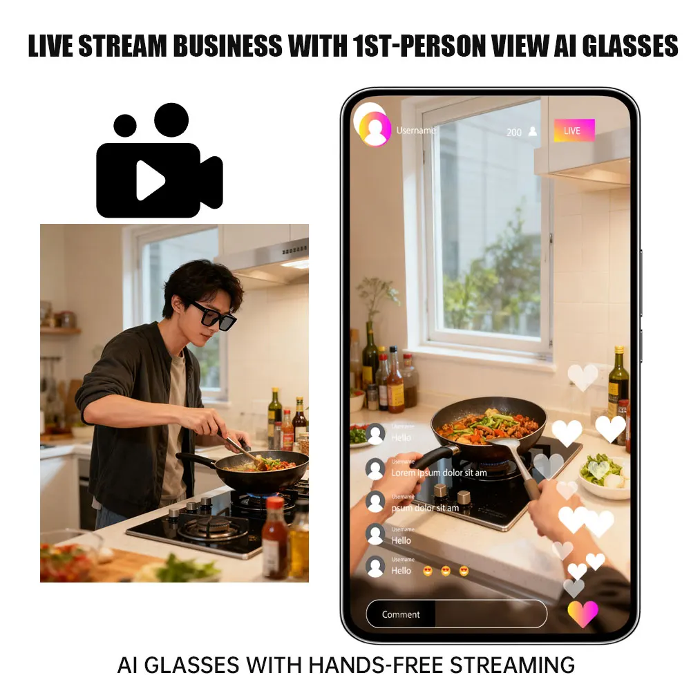 World's 1st Live Streaming Glasses with AI 1080P Camera & Hands-Free Broadcast